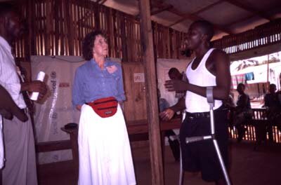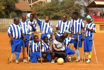 by Bob Jones Since the 2003 Play4Hope tour of England by a Sierra Leonean amputee soccer squad, the Single Leg Amputee Sports Club (SLASC) that formed the national team has grown considerably in numbers and proficiency. On their return to Sierra Leone they received a good deal of positive publicity. Other young amputees came forward and to-day there are three full teams and reserve players regularly taking part in the sport. SLASC was formerly affiliated to and supported by the UK charity Action For Children in Conflict (AFCiC). But since that chairty has withdrawn its support for lack of funding, the soccer team relies totally on private donations for support, and even for transportation to practice. Training takes place every week near the beach where a cool afternoon sea breeze tempers the heat and makes playing enjoyable. On Saturday a full 60 minute competitive match is played between the two Freetown teams, East and West. The players turn out in their smart team kit and a highly competitive game ensues. This is held in a small stadium and many spectators gather as well as player's friends. One problem that these regular matches produce is broken crutches.